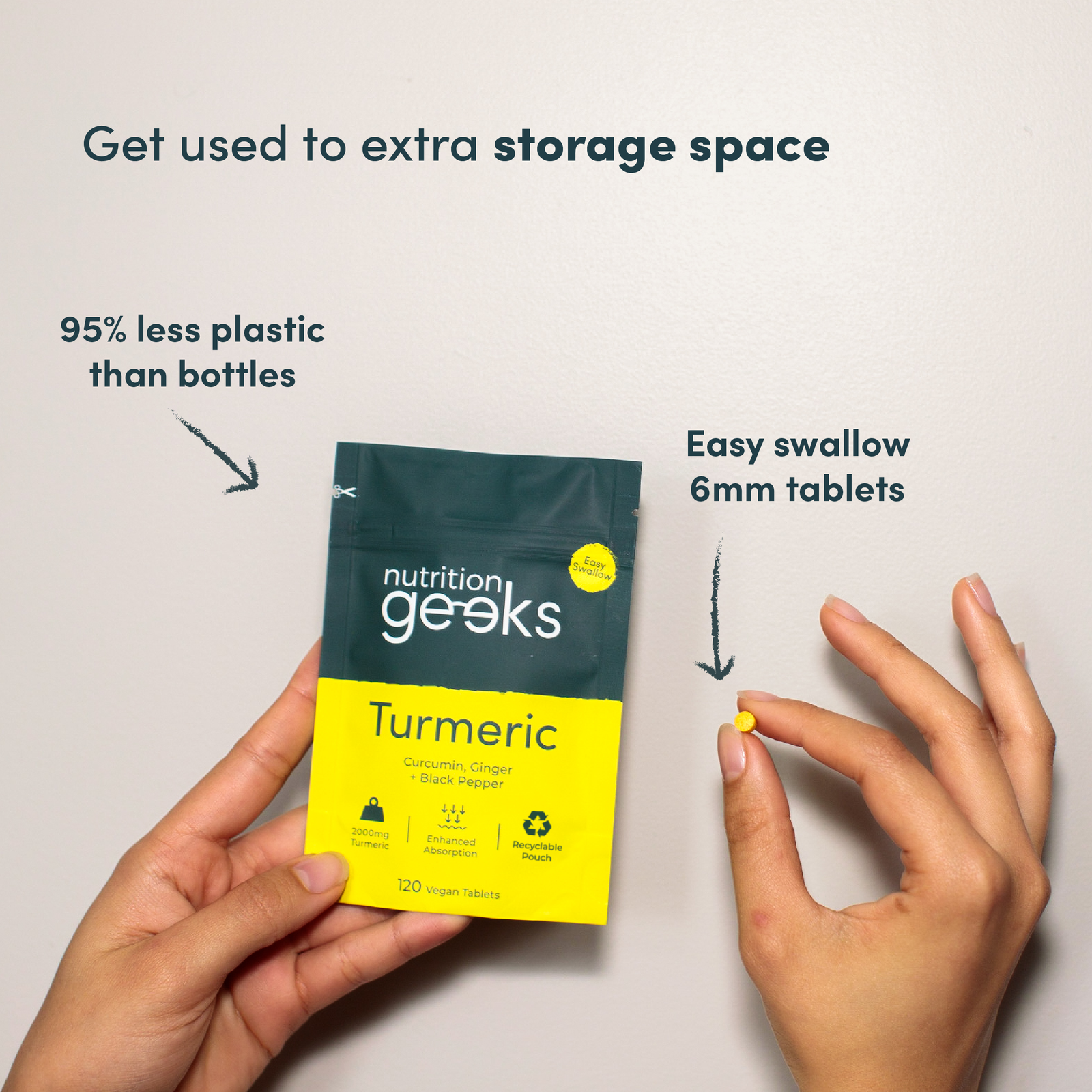We use high strength extracts to deliver equivalent benefits of two large turmeric capsules in one tiny 6mm tablet.